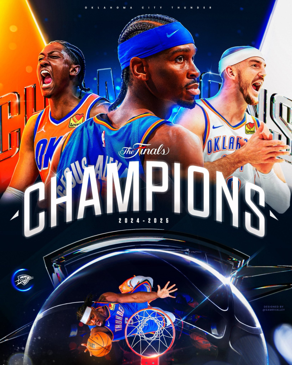 Košarkaši Oklahome postali su prvi put šampioni NBA lige, pošto su na svom terenu savladali Indijanu rezultatom 103:91 u sedmom meču finala plej-ofa i tako sa 4:3 u pobedama trijumfovali u seriji.