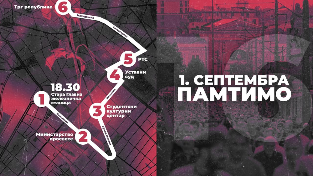 Šetnja će krenuti sa Stare Glavne železničke stanice, preko Nemanjine do zgrade Ministarstva prosvete, zatim SKC-a i Ustavnog suda, zgrade RTS-a, do Trga Republike.